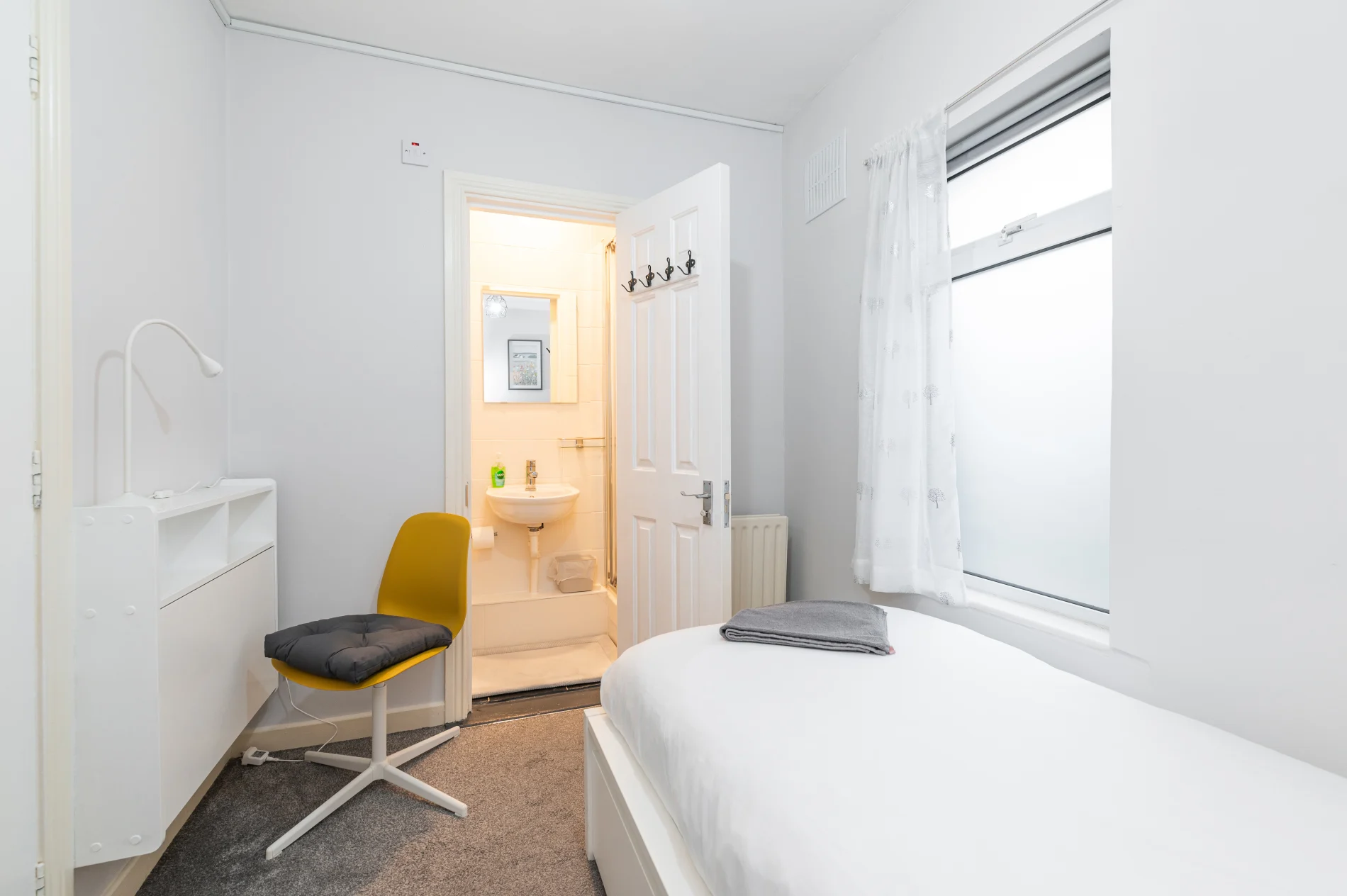 The Ensuite Bedroom is a single room. The floor size of the room is 65 m². The room is on the first floor of the house. In this room, you will have your comfortable bed, spacious storage and bathroom. The kitchen is shared with the other tenants.
