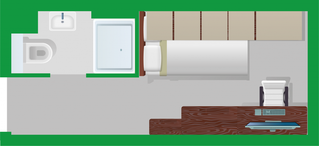 Our 12m2 bronze plus en suite is for those students who want a little extra space! Located on a larger corner of the complex, our bronze en suites have a bigger kitchen and windows for a fabulously airy and bright space. Snuggle into your comfy bed and make use of the space provided with a wardrobe and cupboards as well as your very own desk. Enjoy the privacy of your own en suite with fun communal spaces and a shared kitchen for when you want to see your friends! The kitchen includes an oven, hobs, a fridge freezer, a dining table, comfy seating, and a TV. It’s the perfect space to chill out and relax! With secure door entry to all of Aspen's communal spaces, you’ll always feel safe and secure. There’s also DAC access rooms available.
