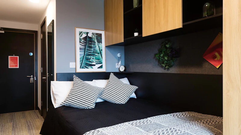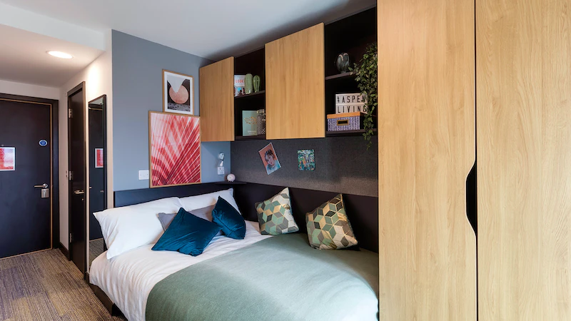 With our fabulous 12m2 bronze en suite, students can relax and enjoy privacy with cozy communal spaces when they want to socialize. Available on a flexible tenancy, pick an arrival date that works best for you! Get ready to sink into your comfy mattress and enjoy bags of space with a roomy wardrobe, cupboards, and your very own study desk. There’s a nice hot power shower in your en suite to start your day off right and a shared kitchen so you can cook yourself something delicious. Your kitchen will include high-quality appliances with an oven, hobs, a fridge freezer, a dining table, soft seating, and a TV. With secure door entry and access to all Aspen's communal spaces, students can feel safe and secure in their new home. All bills are included and there’s unlimited WiFi, perfect for streaming and studying. There’s also DAC access rooms in each apartment.