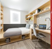 Choose a spacious classic room in a 3, 4, 5, 6 or 7 bed flat and share a modern kitchen/living area. These rooms come fully furnished with a ¾ bed, plenty of storage and your own en-suite bathroom. Be quick, as these rooms sell out fast!
