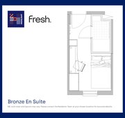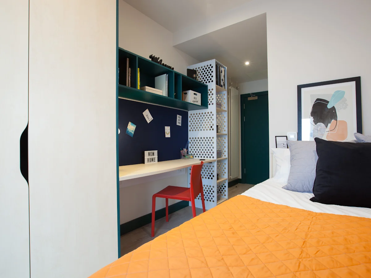 Our Bronze En Suites provide you with everything you should ever need. A small double bed, desk workspace, plenty of storage and en suite bathroom. Enjoy access to a shared kitchen and social areas. 13-14 sqm.