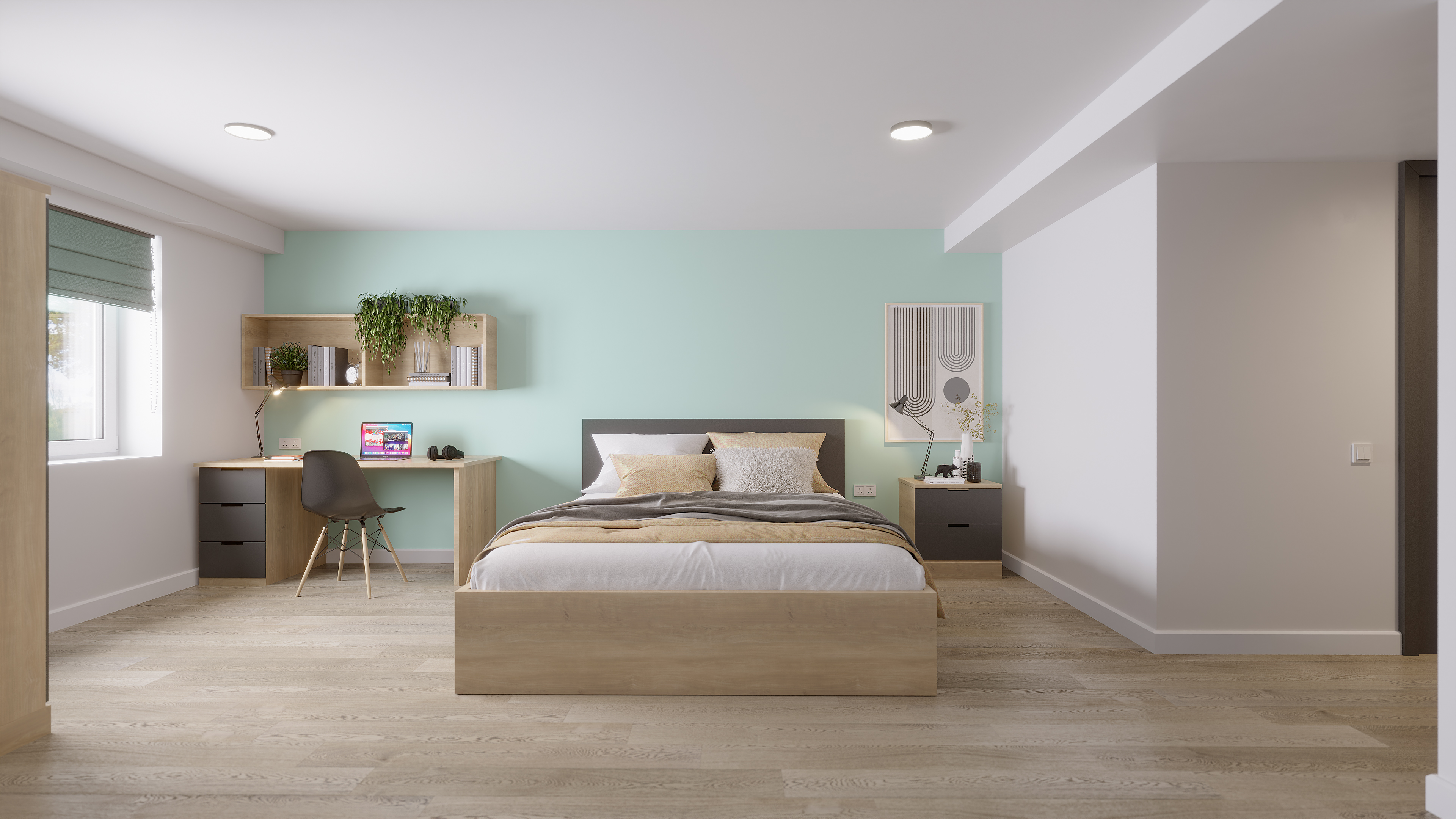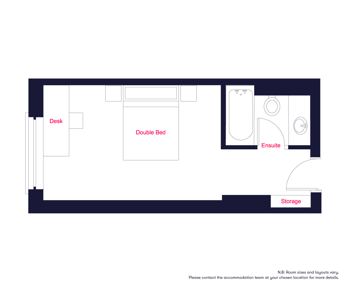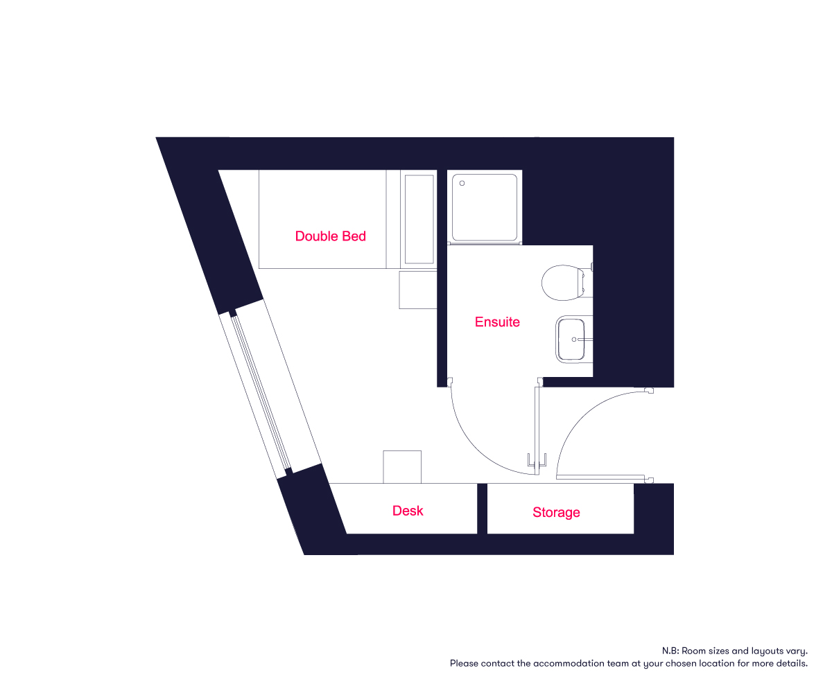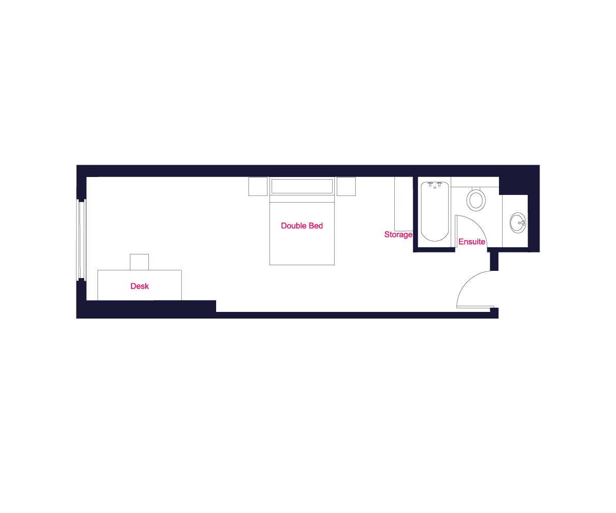 Our Silver Ensuite Premium comes equipped with a comfy double bed, lots of wardrobe and under-bed storage, high quality furnishings including a large study desk and a private ensuite shower room.