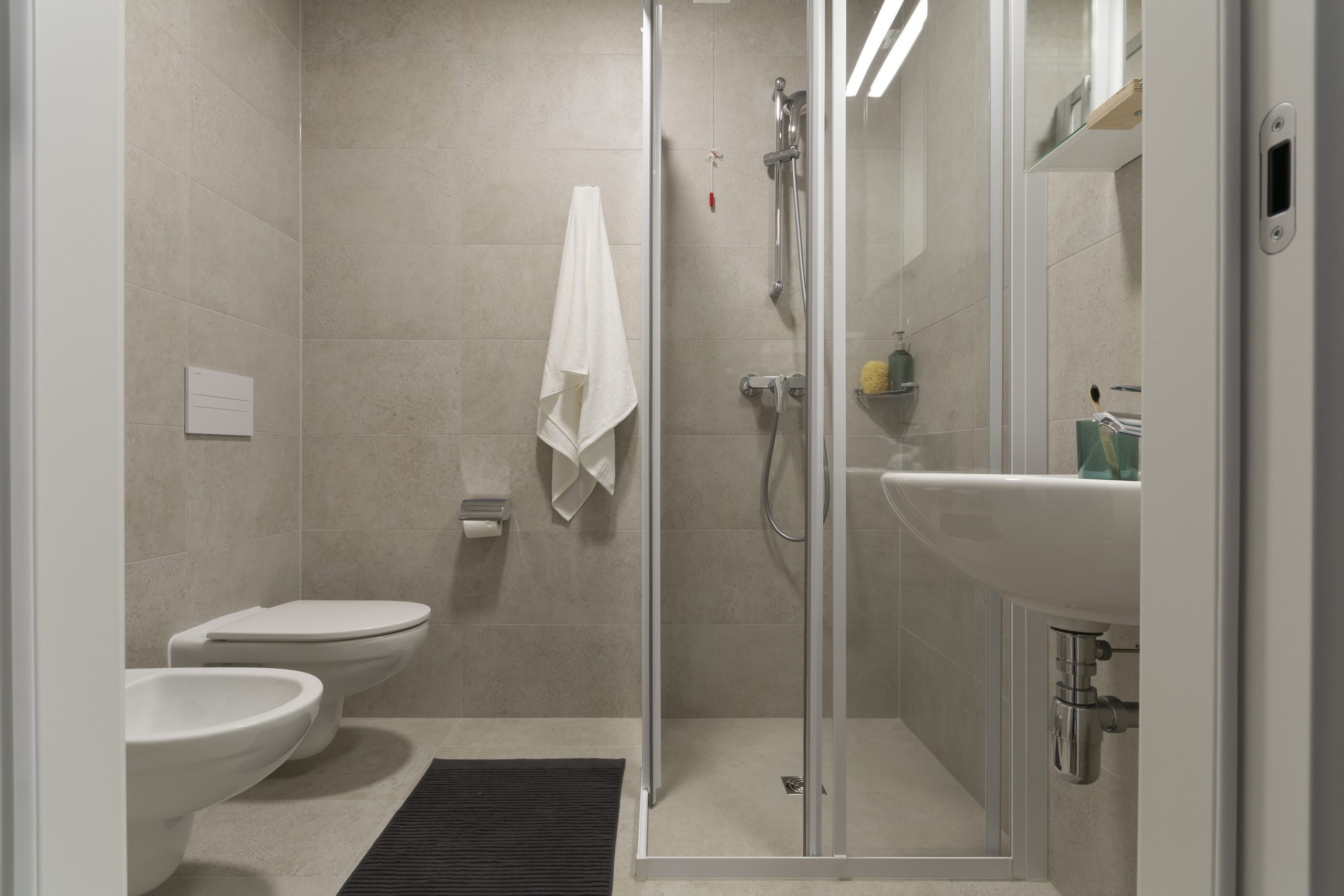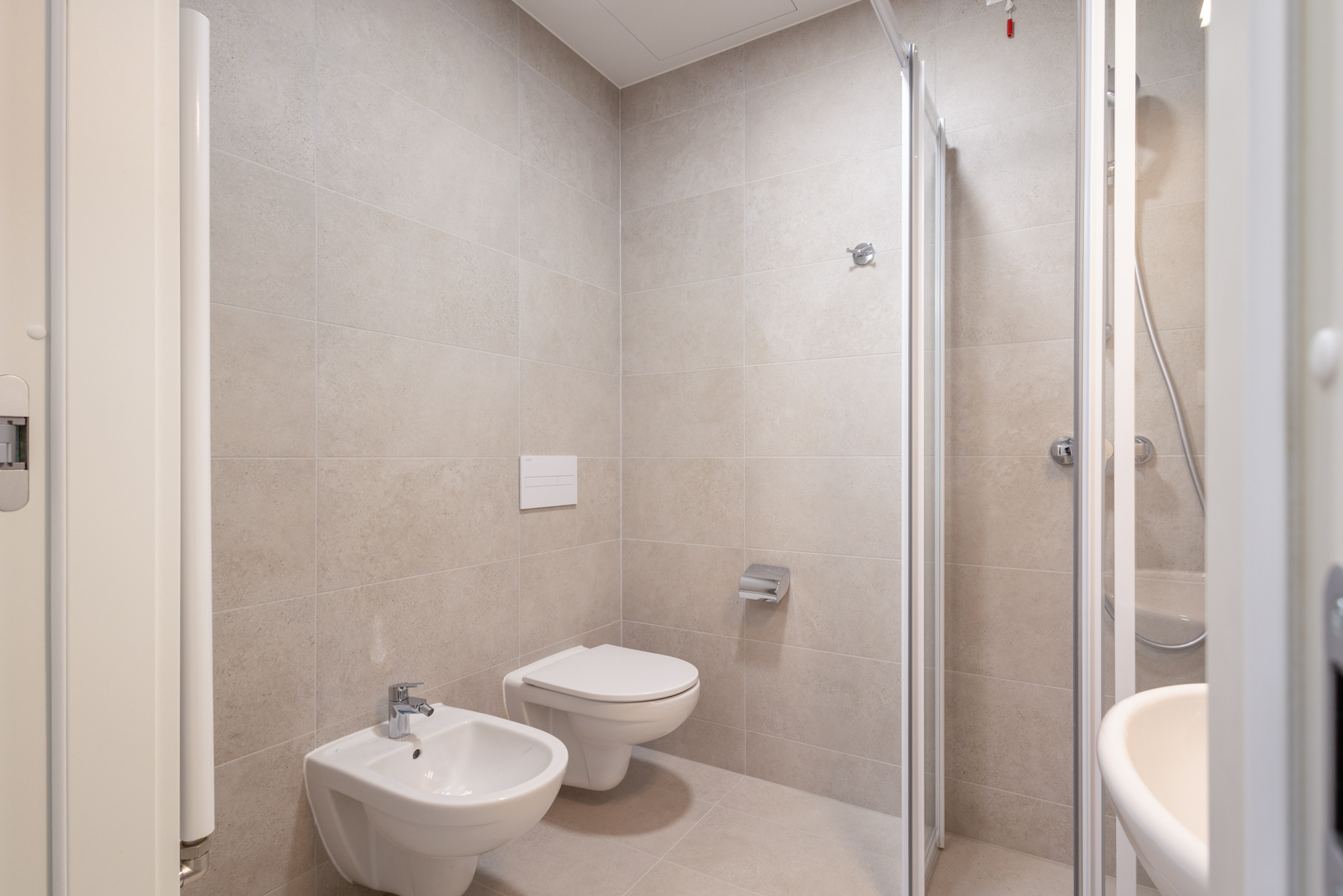 The Smart Studio is a studio with private bathroom, located on the ground floor of the building. The overall size is about 19 square meters, including the bathroom. The room consists of a study area with desk, wardrobe and comfortable chair, a 120 cm bed, a wardrobe and a living area with table, stool and kitchen equipped with sink, refrigerator, induction hob and two ovens: electric and microwave. The heating is centralized and the room is equipped with a practical thermostat to manage the internal temperature. The private bathroom measures approximately 4 sqm and is equipped with a comfortable shower.
