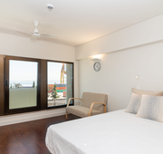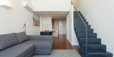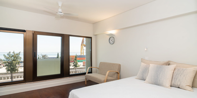 The Deluxe Plus Studios are arranged over two floors, giving them a truly spacious feel. They all come with their own private ensuite bathroom and kitchenettes as well as a desk/study area, air conditioning and a balcony with stunning views over the river Tagus. Each studio is a massive 63m2 and can be found on the fourth floor.