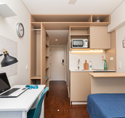 Premium Studios have their own private bathroom as well as an in-room kitchenette. Each studio is 24-25m2 and can be found on floors ground, 1, 2, 3. These spacious rooms provide all the benefits of our common spaces & events, with the privacy of your own kitchen area and private living space.