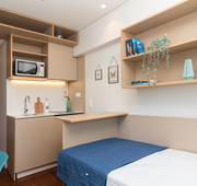 The Classic Studios have their own kitchenette and private ensuite bathroom. Each studio is 16m2 and can be found on floors 1-4. With their in-room kitchenette, these rooms are perfect for those who prefer to have their own private living space, but you’ll still get the best of both worlds with access to our common spaces & events, so socialising won’t be a problem.