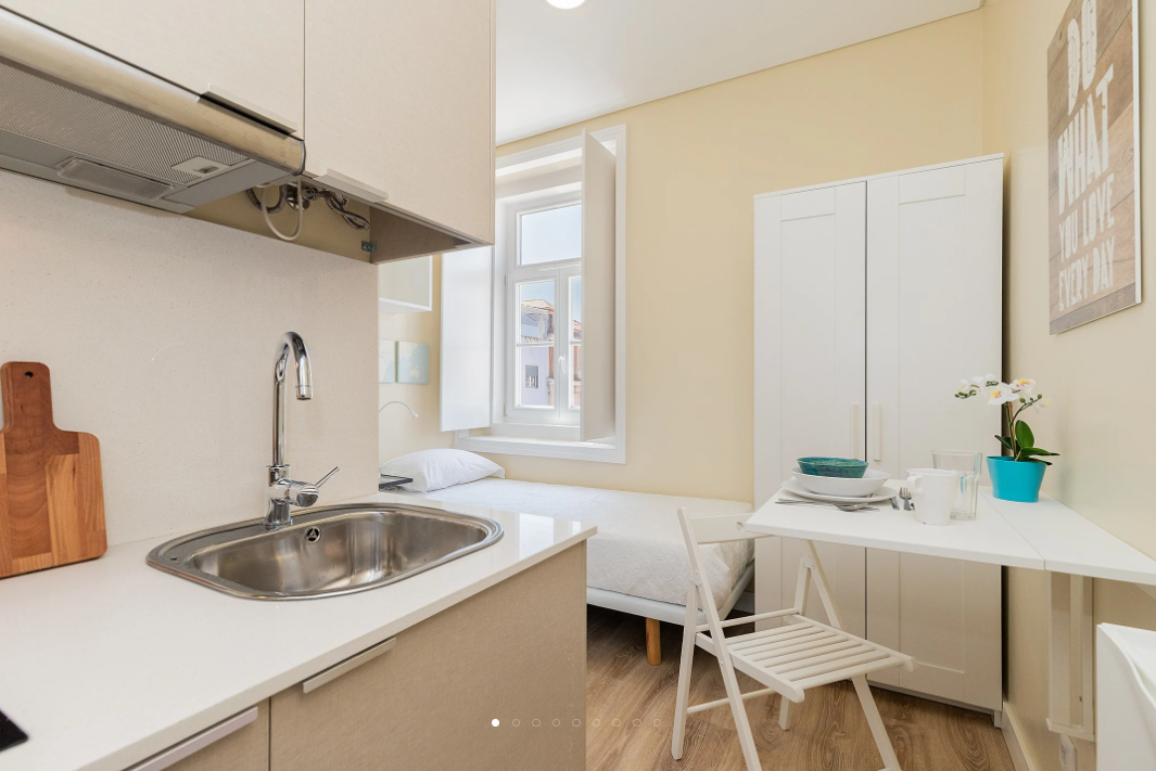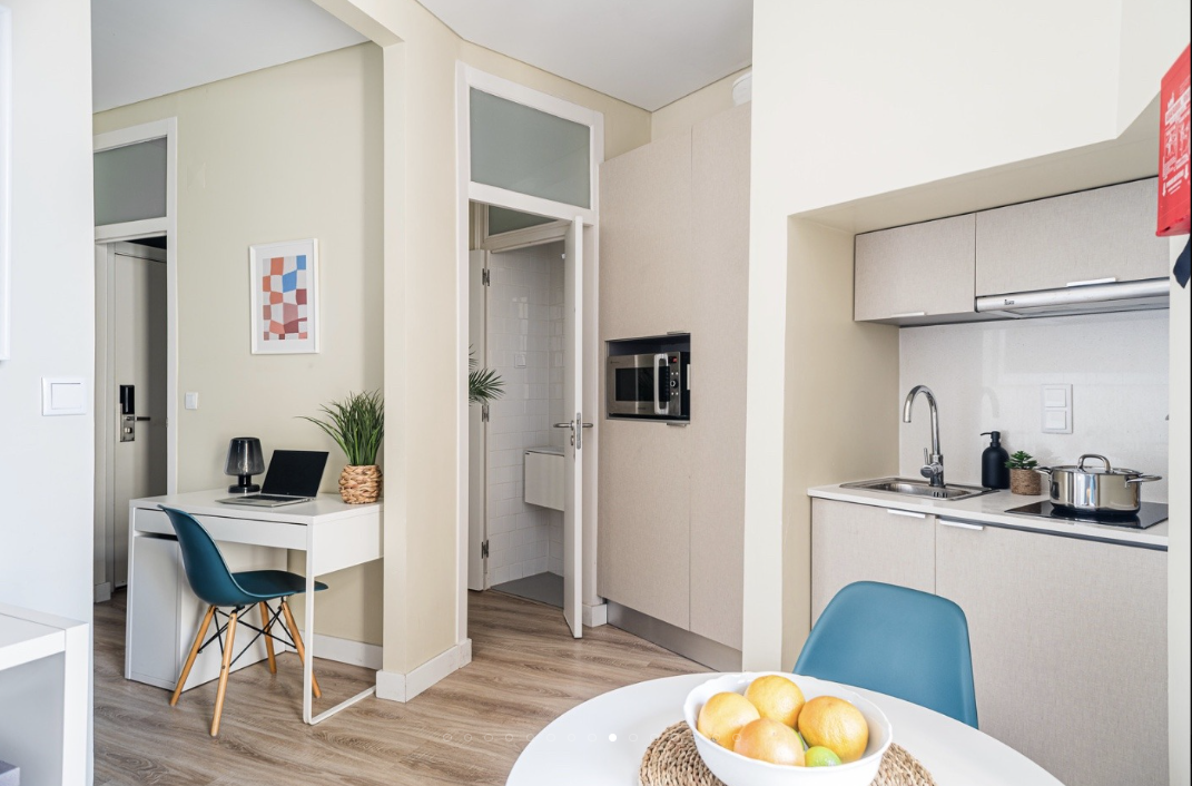 Some rooms have single or double beds, wardrobes, and work areas with desks and chairs in Ajuda. It has a range of studio choices and one-bedroom apartments. A kitchenette with basic equipment and a private ensuite bathroom are features shared by all types of accommodations.