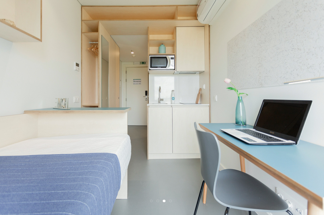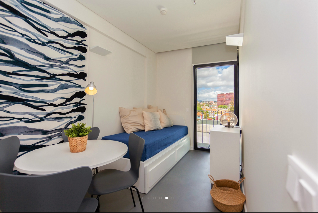 Floors Available 4; Our 1 Bed Apartments are located on the fourth floor and approximately 27m2 with a beautiful view of Carcavelos. Our apartments are ideal if you like to have your own space and keep it the way you like it. You can still use all of our common spaces & attend our events, so making friends won’t be a problem. You get the best of both worlds.