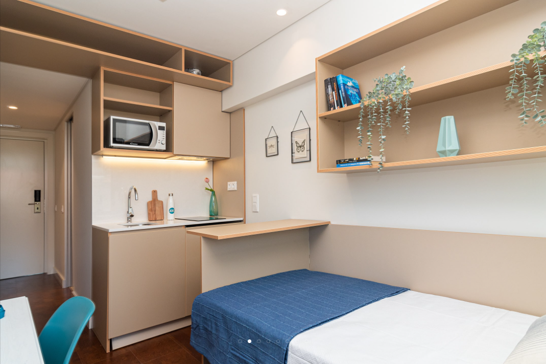 Premium Plus Studios have their own private bathroom as well as an in-room kitchenette. Each studio is 24-25m2 and can be found on floors ground, 1, 2, 3 & 4, with an enviable view of the river Tagus. The kitchenette provided in these rooms make them perfect for those who prefer to have their own private living space, but you’ll still get all the benefits of our common spaces & events.