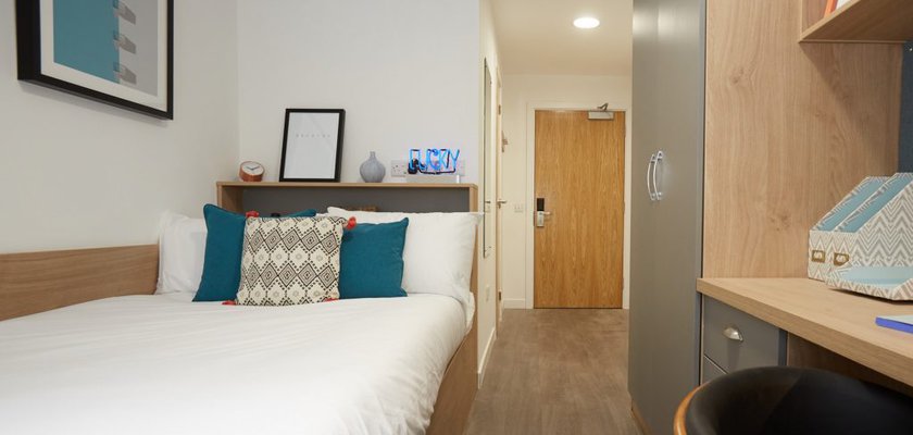 Equipped with all our usual great features and plenty of space including a small double bed, your own en suite shower room, storage, and space to study. You will also have access to a shared kitchen/living room where you can socialize with your new flatmates. Average room 15.6sqm.