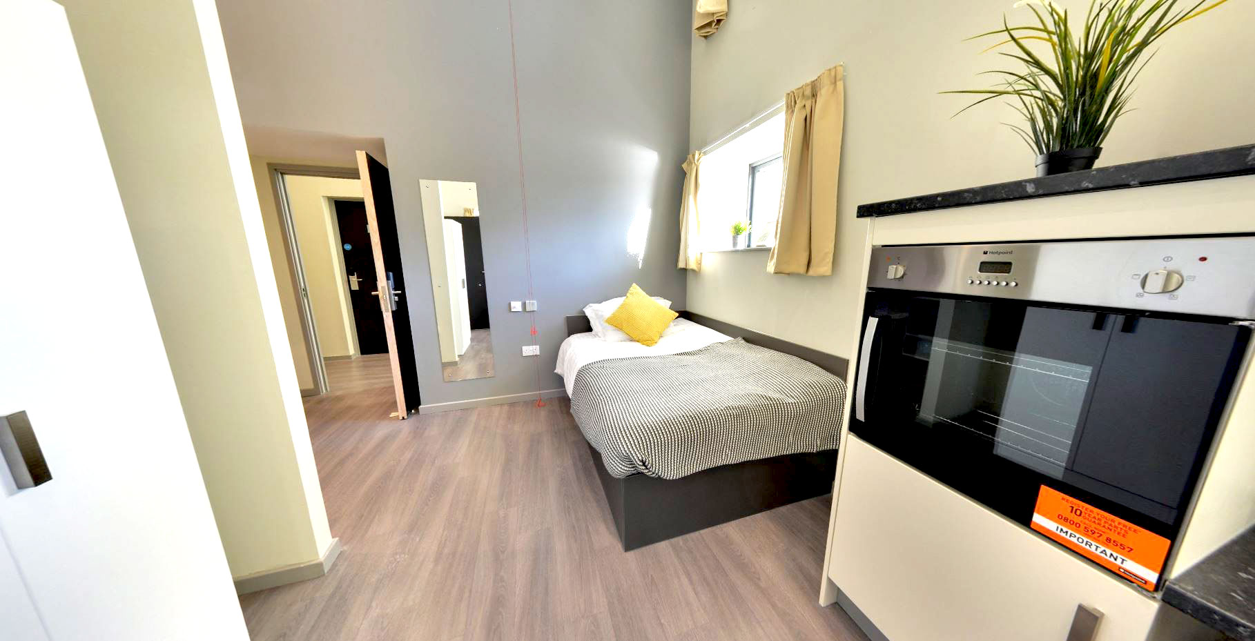 Experience the best of student living in our Premium Plus Studio. With a generous 38.3m² layout and a full double bed, this is our largest studio space, tailor-made for focused study, comfortable living, and a little luxury. Complete with a personal kitchen and all the storage you need, this is studio living at its finest.