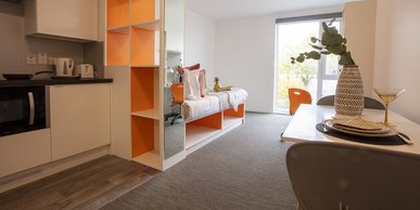 This luxury and modern studio measures around 22.5m2 and comes with a double bed, study area, fully fitted kitchenette, an ensuite bathroom and ample storage. Situated on the top floor meaning you will have stunning views across the city. The shared areas include a study room and games room. You will also have access to the onsite cinema room, onsite laundry facilities.