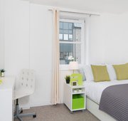 These bright, modern 3 bed flats come with an average bedroom size of approximately 9m2 which has a single bed which has great under bed storage. Each room comes with a mirrored wardrobe, shelving unit, desk with drawers and a large window which brings in great natural light.