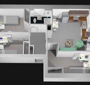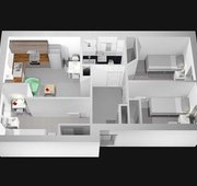 There is also a living/kitchen area where there is a table, chairs, sofas and a fully fitted modern kitchen which includes a full-sized dishwasher and washing machine/dyer so no need to queue and pay for your laundry anymore. A great place to hang out with your friends and flatmates and call your home. The flat has a dedicated study room with two large desks and comfortable desk chairs and accessories. A perfect way to separate you study space from your social space. You don’t want to miss out on this flat!