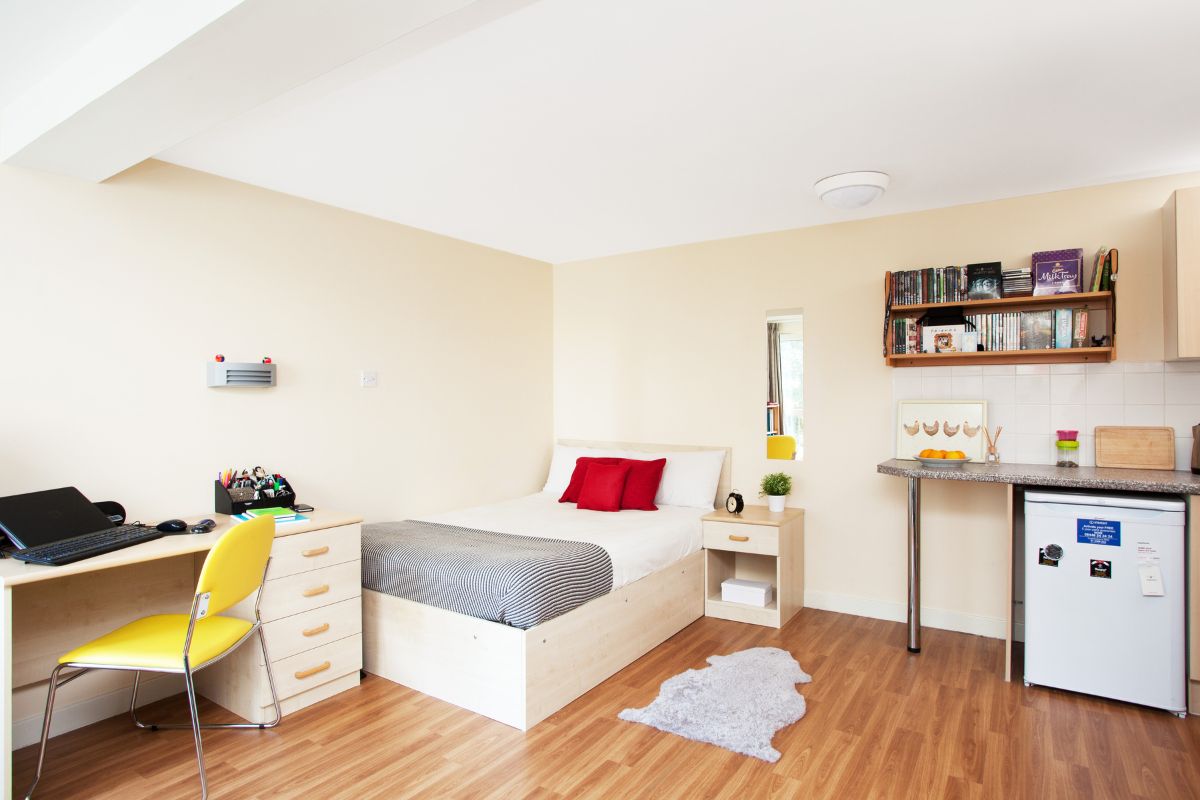 Studio: Want your own private space complete with a fridge, desk and wardrobe? Our student studio rooms are a total bargain. A truly great price for your own room complete with quality furniture and a double bed! We recognise being a student on a budget and the rising costs of living is tough going, which is why we’ve created comfortable, quality studio accommodation at the lowest possible price. We include all your household bills in your rent, plus regular communal cleaning, so you can focus on your studies without worrying about money.