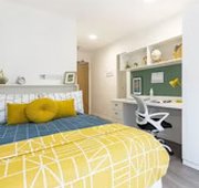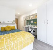 Self-contained bedroom, kitchen and wet room. Lowered counters and desk. Approximately 19.16 - 27.74m² Small double bed Desk, chair, wardrobe and chest of drawers included in the room
