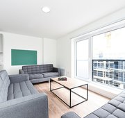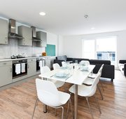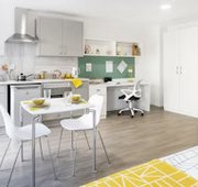 Communal kitchen and living space with up to 6 en-suite rooms per flat Approximately 16.82 - 24.89m² Small double bed Under-bed storage, desk, chair, wardrobe and chest of drawers included in the room