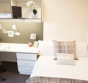 The Premium Ensuite rooms, offering more space and brightness, redefine student living with their sophisticated design and thoughtful amenities. Relax and rejuvenate in the ensuite bedroom, equipped with all the essentials for a comfortable stay. Enjoy the convenience of a shared kitchen that comes with an oven, microwave, kettle, toaster, and dining table, perfect for preparing meals and socialising with friends.