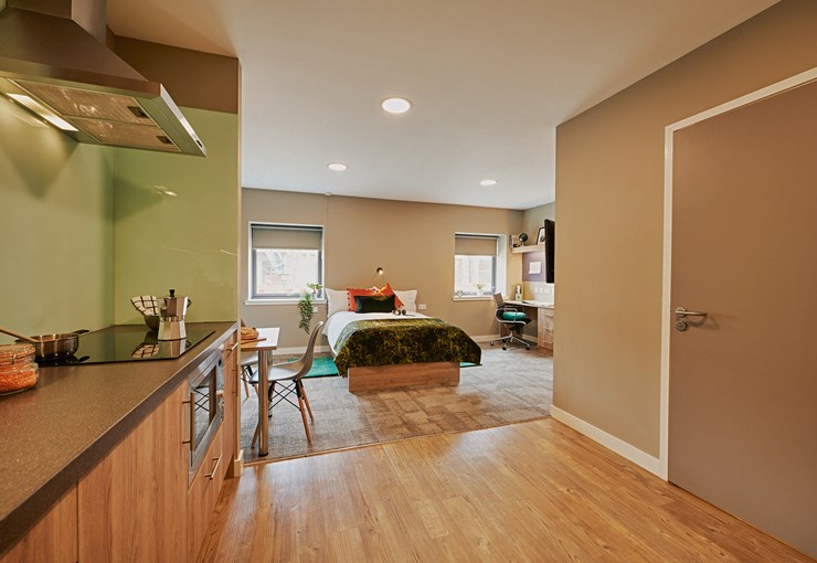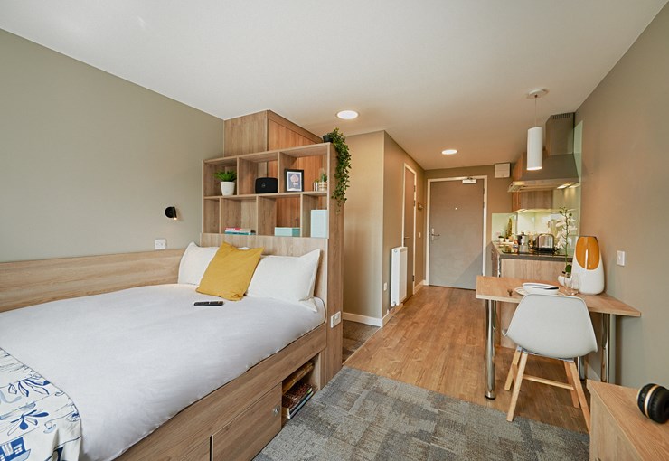 The Platinum Studio Plus is the largest room in The Combworks - ideal for two, or one who loves their space. Some of our Platinum Studios are accessible.