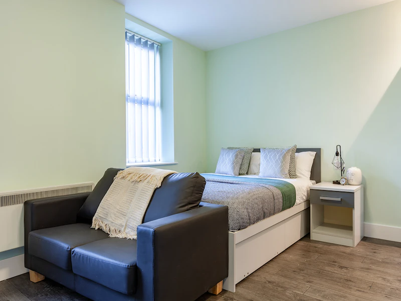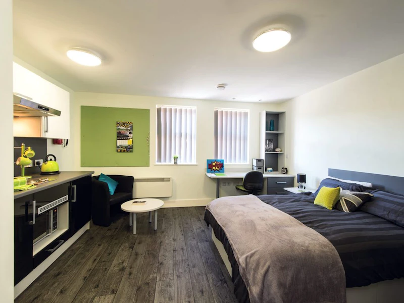 Looking to enhance your university experience? If so, why not opt to live in our Gold Studio and thrive from the privacy of your own room? Featuring a cosy double bed, lots of storage and your very own study area, this space is ideal for students who enjoy living in the lapse of luxury. Your new room is even equipped with modern kitchen facilities, perfect for rustling up a treat after uni.