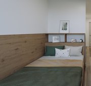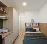 Room size From 23m² Bed Double bed Heating Electric heater Storage Wardrobe Storage Bedside shelf Storage Drawers, underbed storage & coat hooks Studying Desk & chair Studying Bookshelf & noticeboard