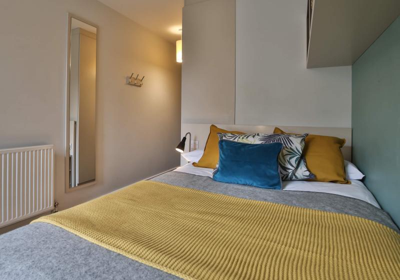 Located on the ground and first floor overlooking the river providing 13 sq m of approx living space, with small double bed, underbed storage, a desk and chair and private en suite bathroom. Your communal kitchen and living space are shared with 4 other flatmates, meaning that you get all the privacy of your small double bed room combined with a relaxed social vibe. Well equipped for your student living experience, Twerton Mill also features a communal social space, a central courtyard plus an onsite laundry room.