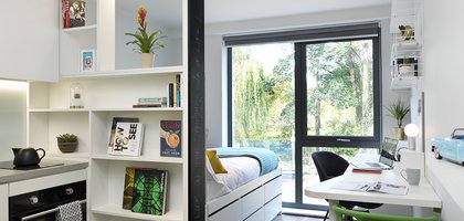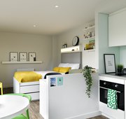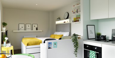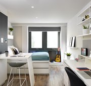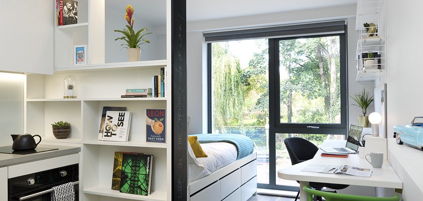 Studio room with en-suite bathroom. (Range of room layouts available). 22.4m2 average size.