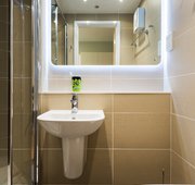 Room size 32.1-33.7m² 3/4 (small double) bed Desk, chair and wardrobe provided in room Ensuite bathroom with shower, toilet and basin Self-contained kitchen, bathroom and living space