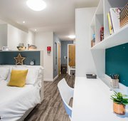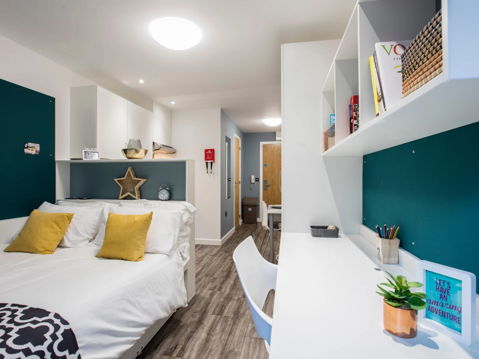 Self-contained student living starts here, boasting a modern mini-kitchen, double bed, with bags of storage space and a study area. Better yet, we don’t charge extra for couples wanting to share. Average room 18-20 sqm.