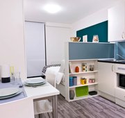 Our most impressive studio apartment. Enjoy a huge studio, with en-suite shower, mini-kitchen, double bed, plenty of storage and great workspace. Perfect for couples looking to share - at no extra cost! Average room 24 sqm.