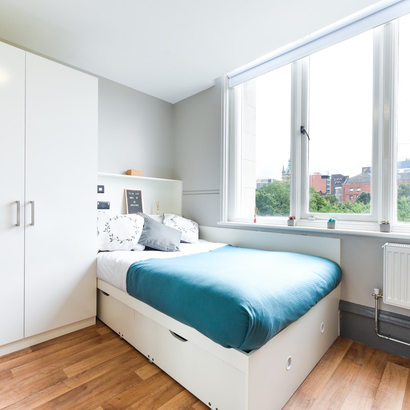 Flexible length of stay from 44-58 weeks Room size 13.5-14.9m² 3/4 (small double) bed Ensuite bathroom with shower, toilet and basin Desk, chair and wardrobe provided in room Communal kitchen and living space, great for socialising