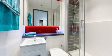 Communal kitchen and living space with up to 7 en-suite rooms per flat, plus easy access to lifts Small double Approximately 14.8 - 15.2m² Underbed storage, desk, chair, wardrobe and full-length mirror included in the room Accessible ready ensuite shower room