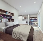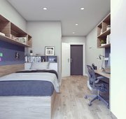 Communal kitchen and living space with up to 4-7 en-suite rooms per flat Located on the external facades of the property, higher floor with views across Belfast 16m² Double bed En-suite toilet and shower facilities Desk and storage space