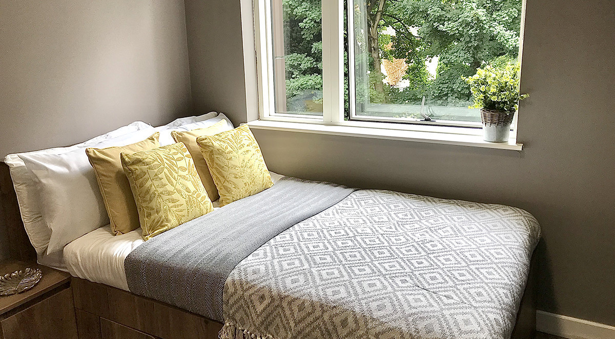 Our studios offer total luxury with bags of comfort to create the perfect home away from home. Get ready to sink into your comfy double bed after a long day of studying at your own desk. For the ultimate independence and privacy, your studio comes with an en suite bathroom, 4-ring hob, and a breakfast bar with stools.