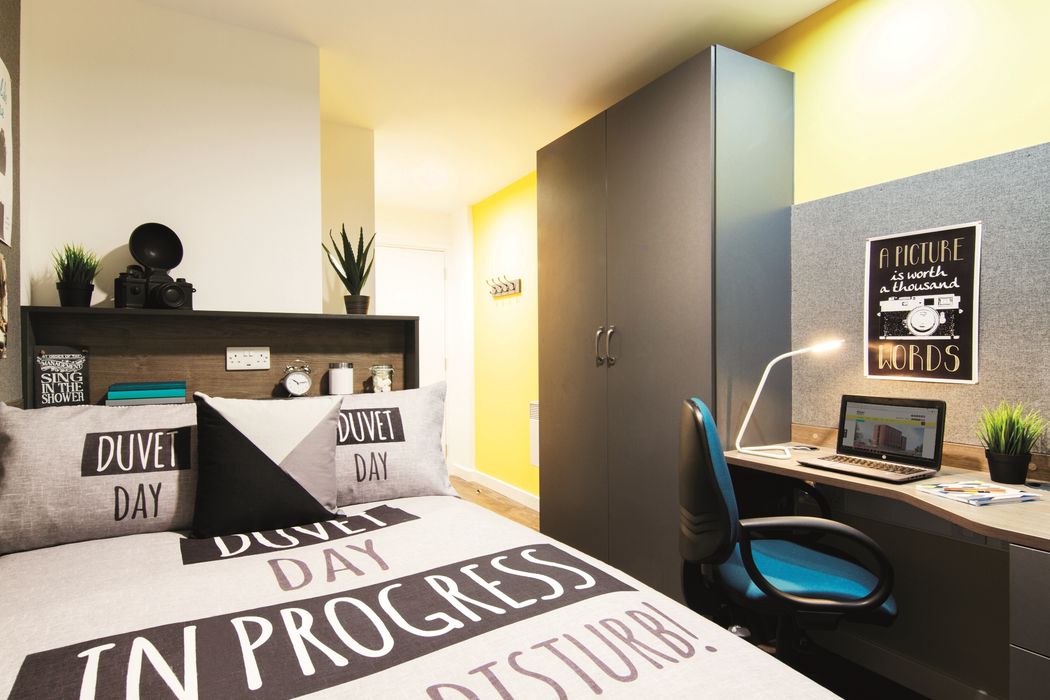 Rooms are approximately 13m2. Choose a classic en-suite room in a 3, 4, 5 or 6 bed flat and share a modern kitchen-living area. You've got all the great features of our Standard En-suites but these rooms are available on a whole range of different floors.