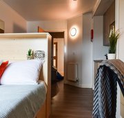Located on the upper floors of the building, these rooms offer stylish living with canal views. Platinum En Suite gives you a small double bed with bedside light, plenty of storage, a work area and a private shower room. You will share a kitchen and lounge area with your flatmates, ideal for cooking and socialising.