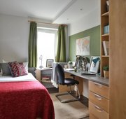 Our Copper En Suite rooms are located on on lower ground floors and offer a private shower room, workspace, storage and a small double bed. You will share a kitchen and lounge area with your flatmates, ideal for cooking and socialising.