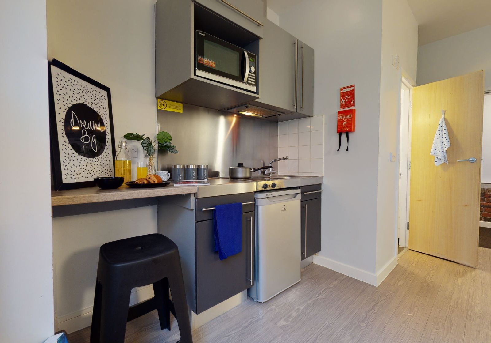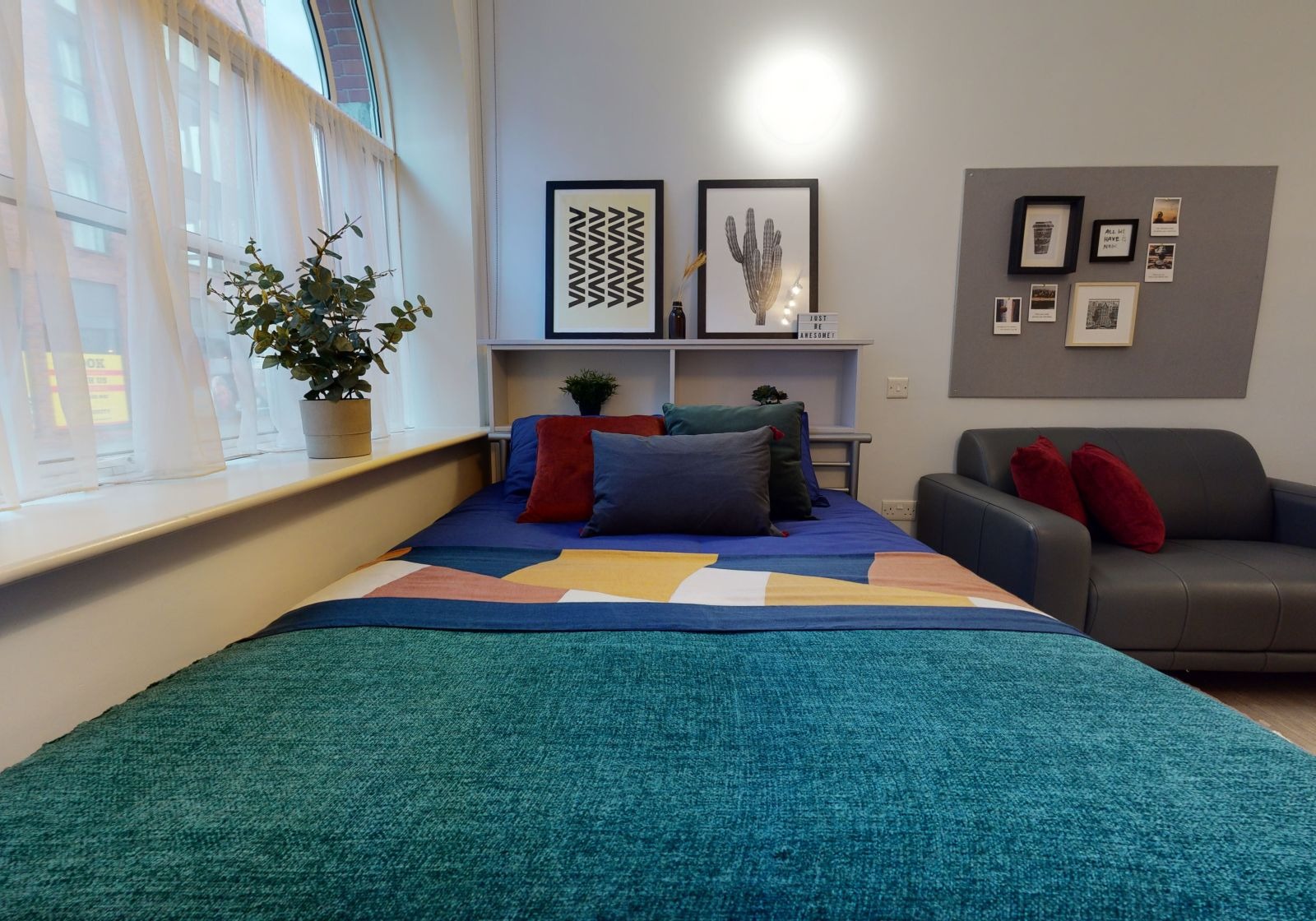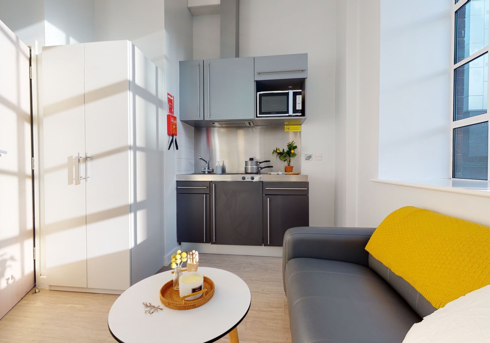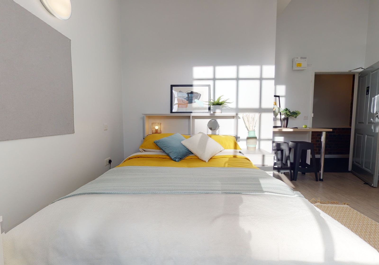 Our top-of-the-range rooms in the renovated factory chic of Studios 51, offering a big 25-35 sq m of floor space, contemporary high-spec finish, sofa and more. With all this space, your own private kitchen and bathroom, double bed and stylish interior, you’ll have the best student living experience possible in our top-end room.