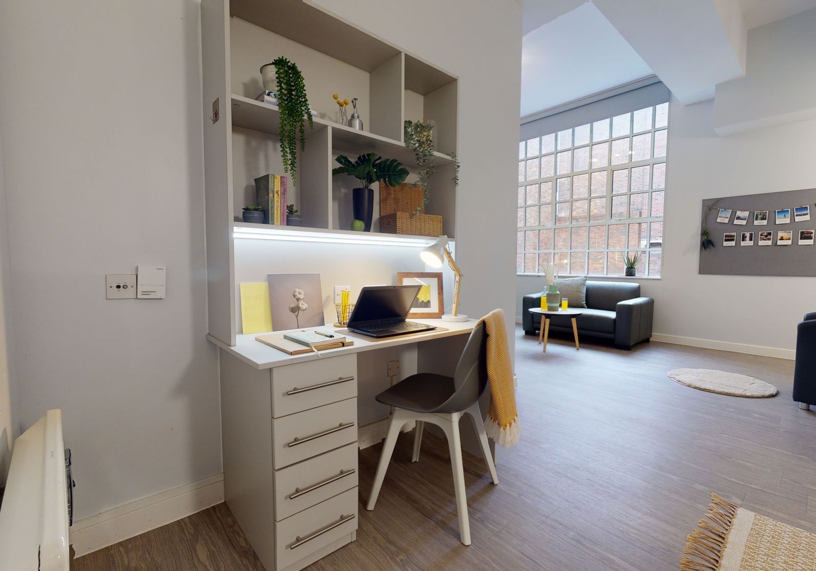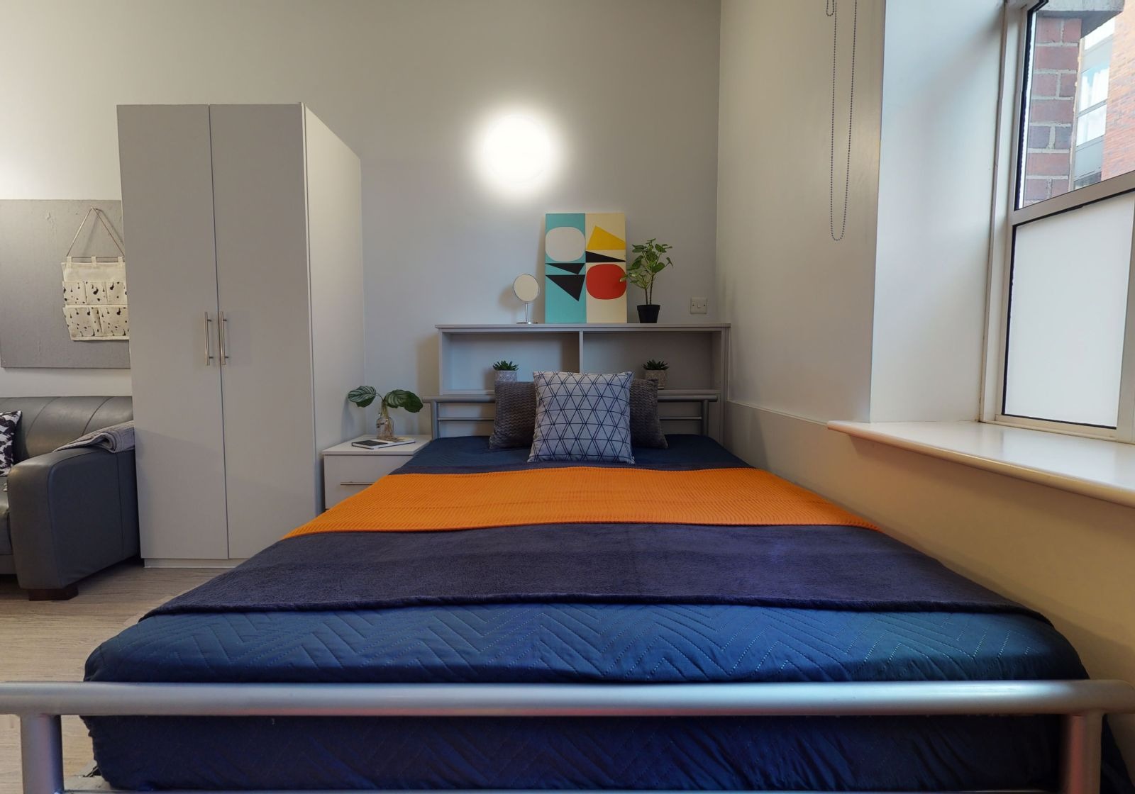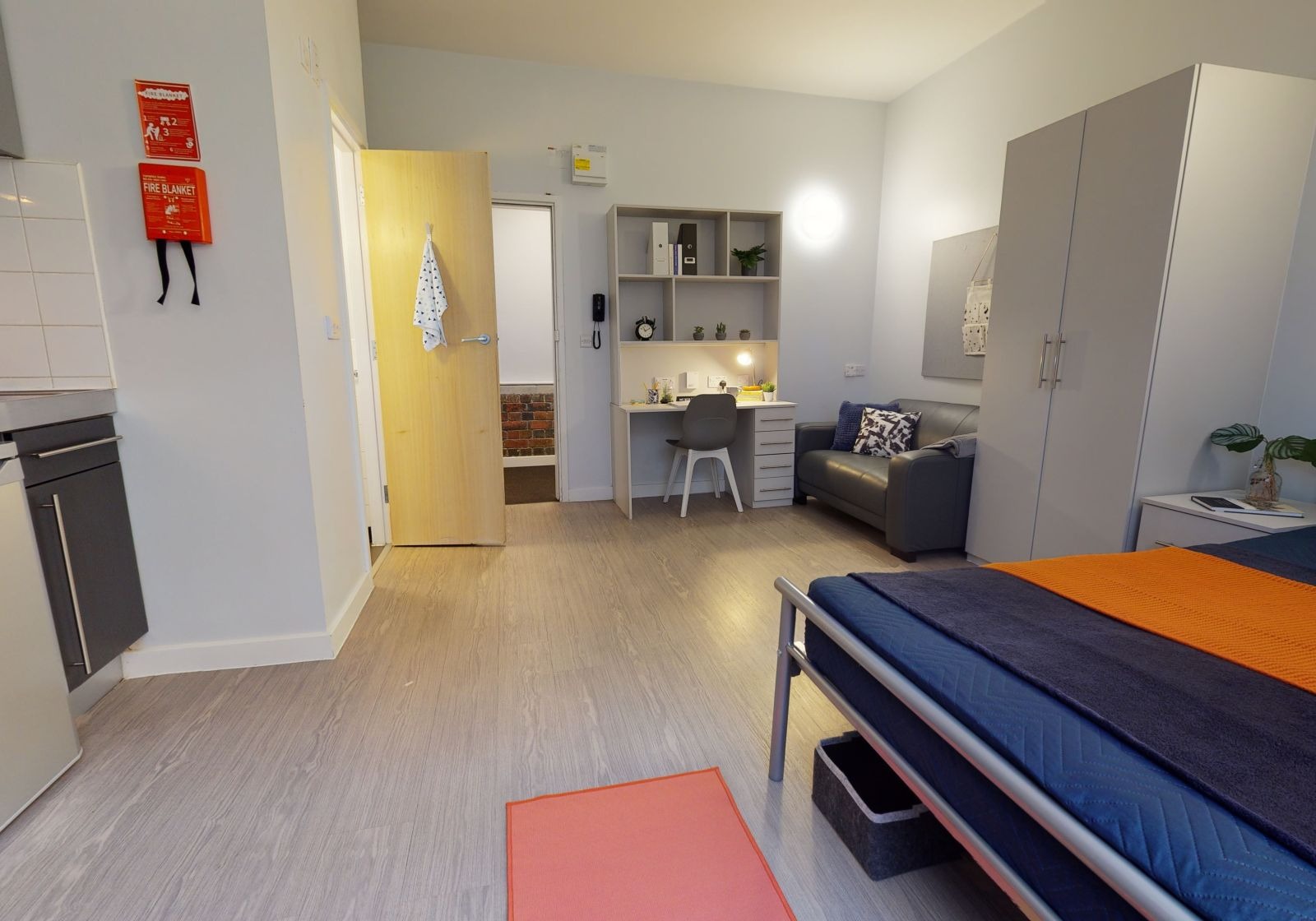 Our top-of-the-range rooms in the renovated factory chic of Studios 51, offering contemporary high-spec finish, sofa and more. With all this space, your own private kitchen and bathroom, double bed and stylish interior, you’ll have the best student living experience possible in our top-end room.