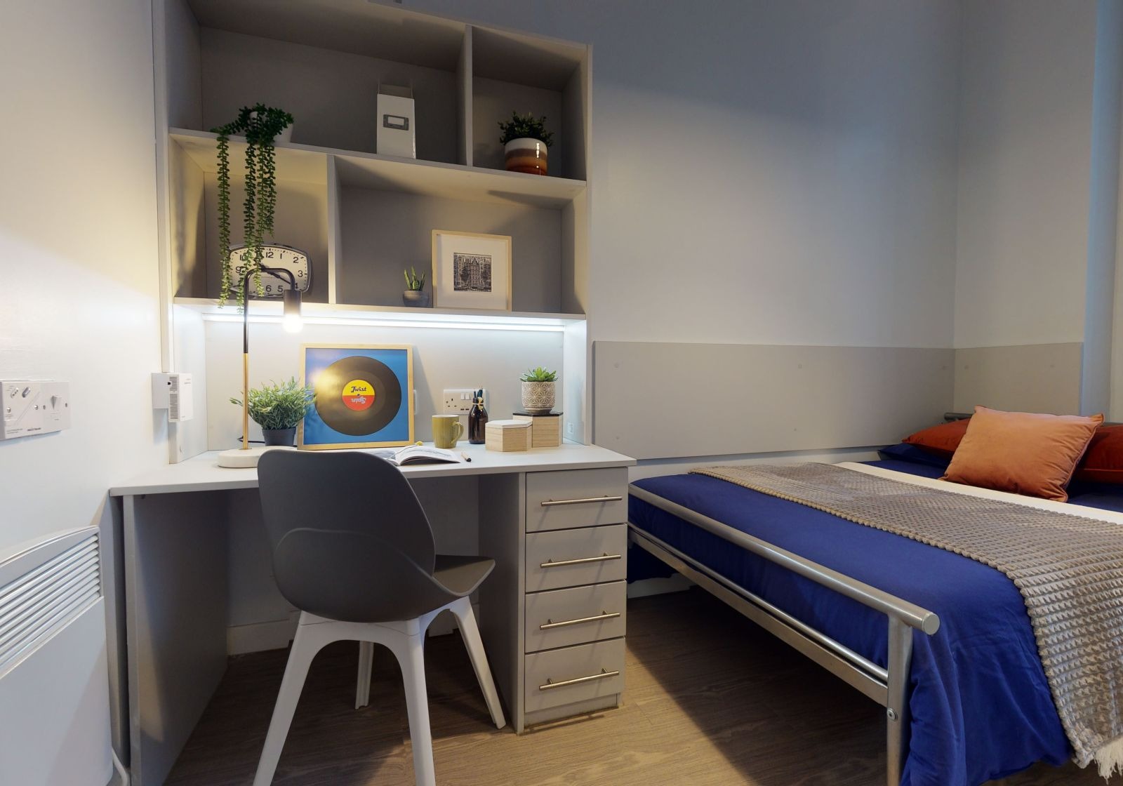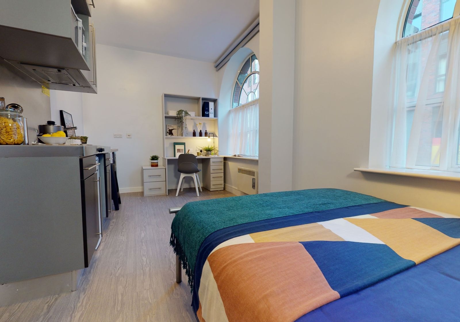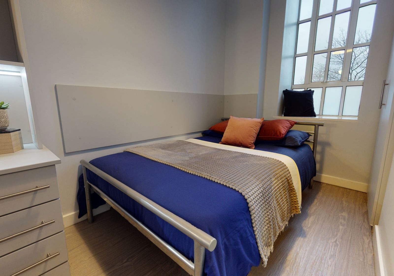Our top-of-the-range rooms in the renovated factory chic of Studios 51, offering contemporary high-spec finish, sofa and more. With all this space, your own private kitchen and bathroom, double bed and stylish interior, you’ll have the best student living experience possible in our top-end room.