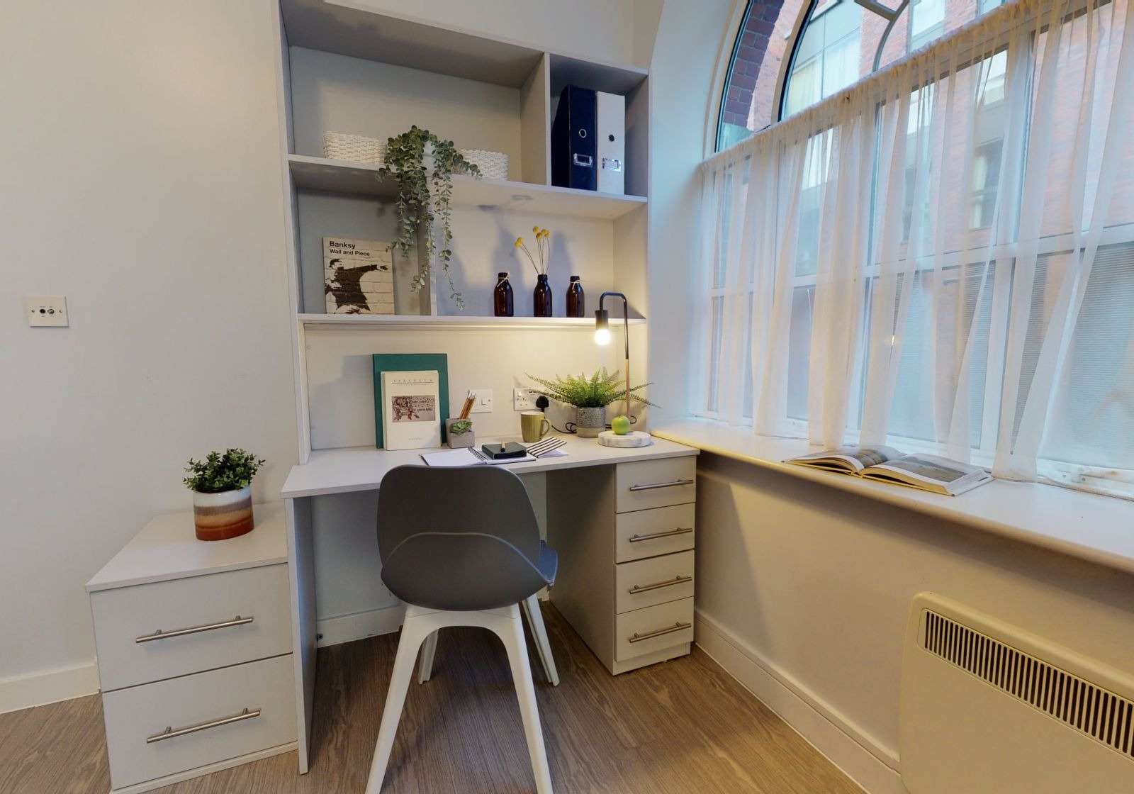 STUD300-031125Located in the renovated factory building of Studios 51, each of these studios is slightly different in size and shape, but all come with the same great features. Ranging from 21-22 sq m in size, each Bronze Studio Plus has been recently refurbished to a high standard. With your own study space, kitchen and bathroom, it’s got everything you need. The building also features an outdoor courtyard and some great social spaces.
