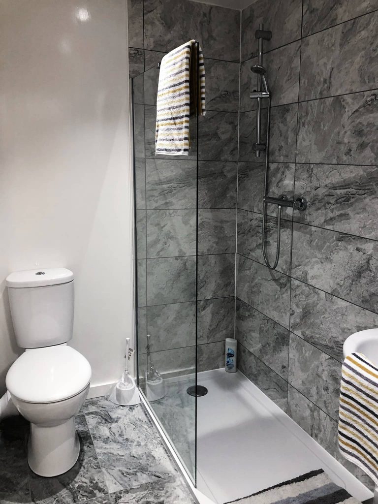 New build well-appointed spacious studio of approx. 19.2m², ample storage with large wardrobe and small double bed. Study area with desk, adjustable office chair and drawer space. Separate fully equipped kitchen with oven, hob and full size fridge. Large spacious en-suite bathroom.