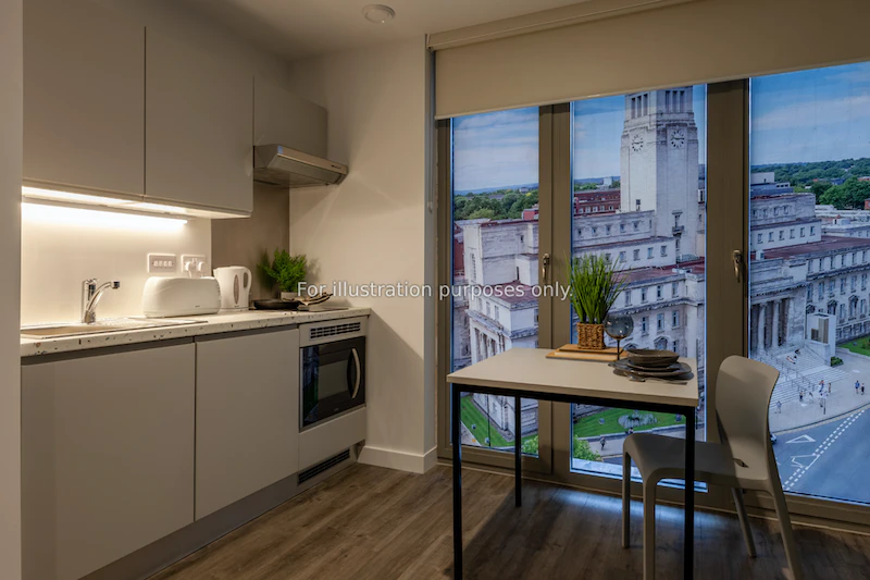 Welcome to our Accessible Studio, conveniently situated on the ground floor of our student accommodation, offering a spacious 24 to 26 square metres of comfortable living space. Inside, you’ll discover a comfortable bed for a good night’s sleep and a cupboard to keep your belongings neatly organised. A dedicated desk provides an ideal workspace for all your academic pursuits. The well-equipped kitchen allows you to prepare meals with ease, and the studio comes fully furnished, ensuring a smooth and enjoyable student experience.