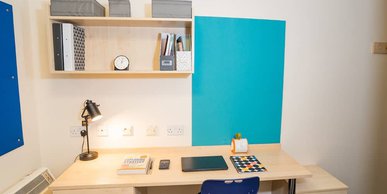 Room Size - From 7m² Bed - ¾ double bed Studying - Large desk and chair Storage - Bedside table Storage - Drawers Storage - Underbed storage Storage - Spacious wardrobe