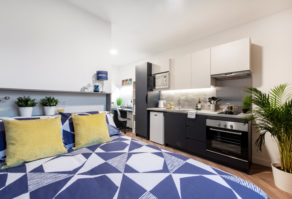 Rooms range from 17.8m2 - 22.2m2. Like to keep your place just the way you like it? Why not live in a great value studio of your very own? Standard Studio’s come equipped with your own kitchenette, double bed and swanky en-suite bathroom. These studios are located on the ground floor and are very limited.