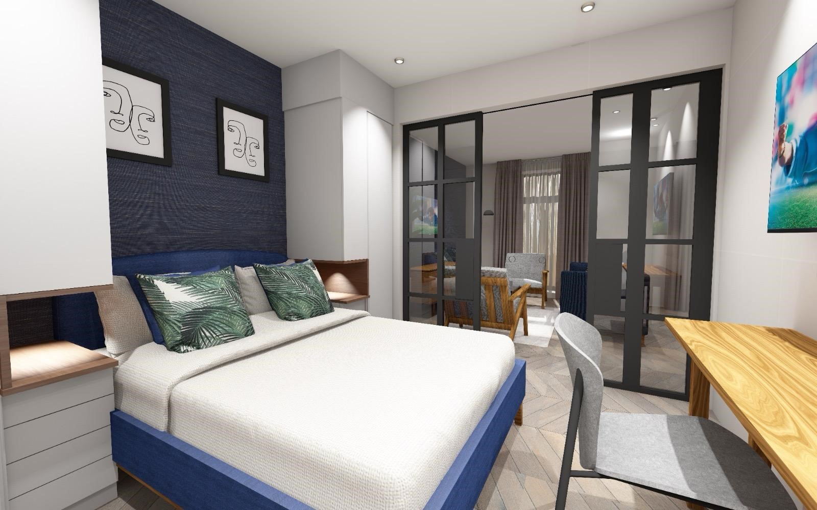 Indulge in the luxury of our one-bedroom apartment, offering a seamless blend of comfort and functionality with a private bathroom, spacious living area, and well-equipped kitchen.