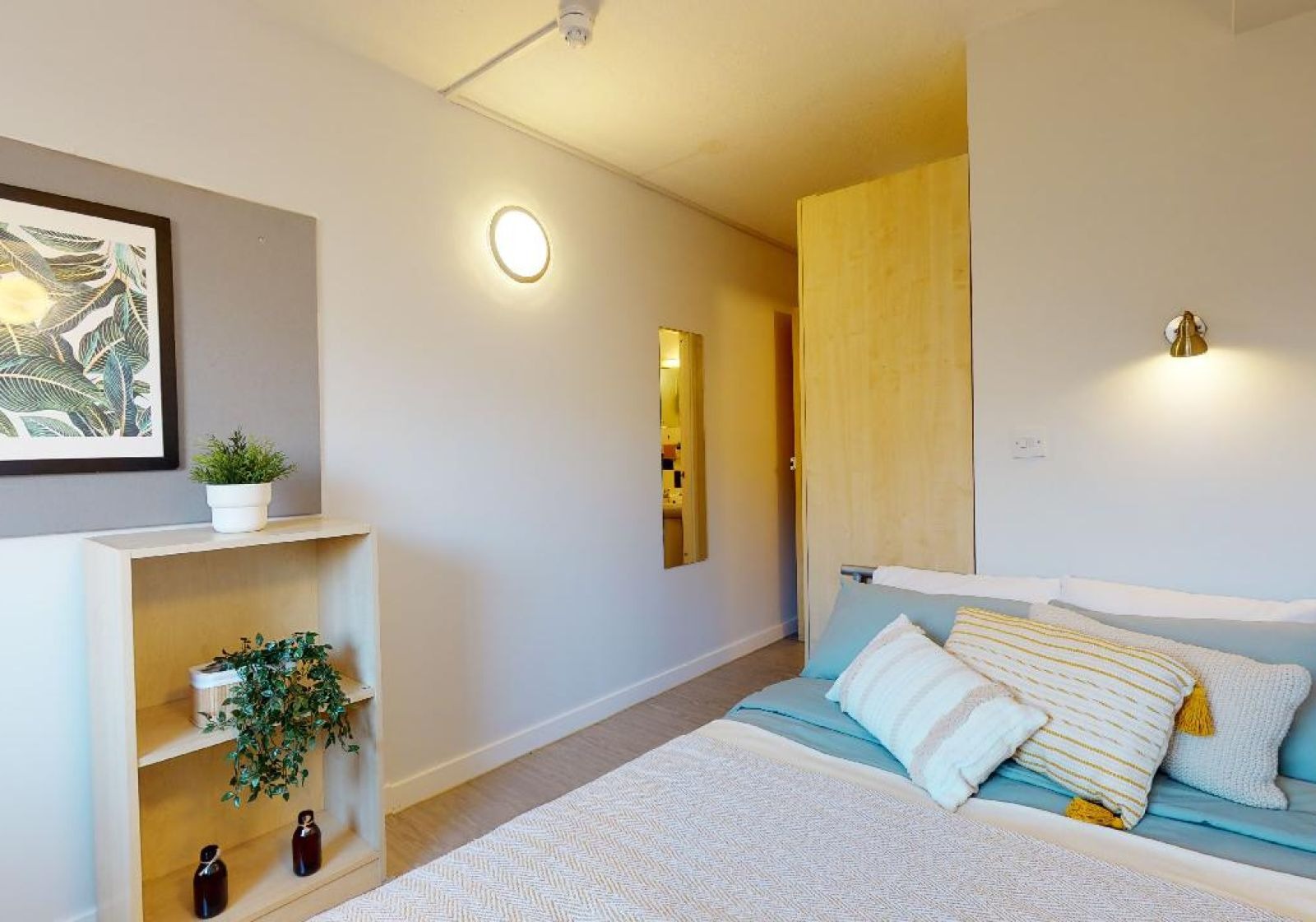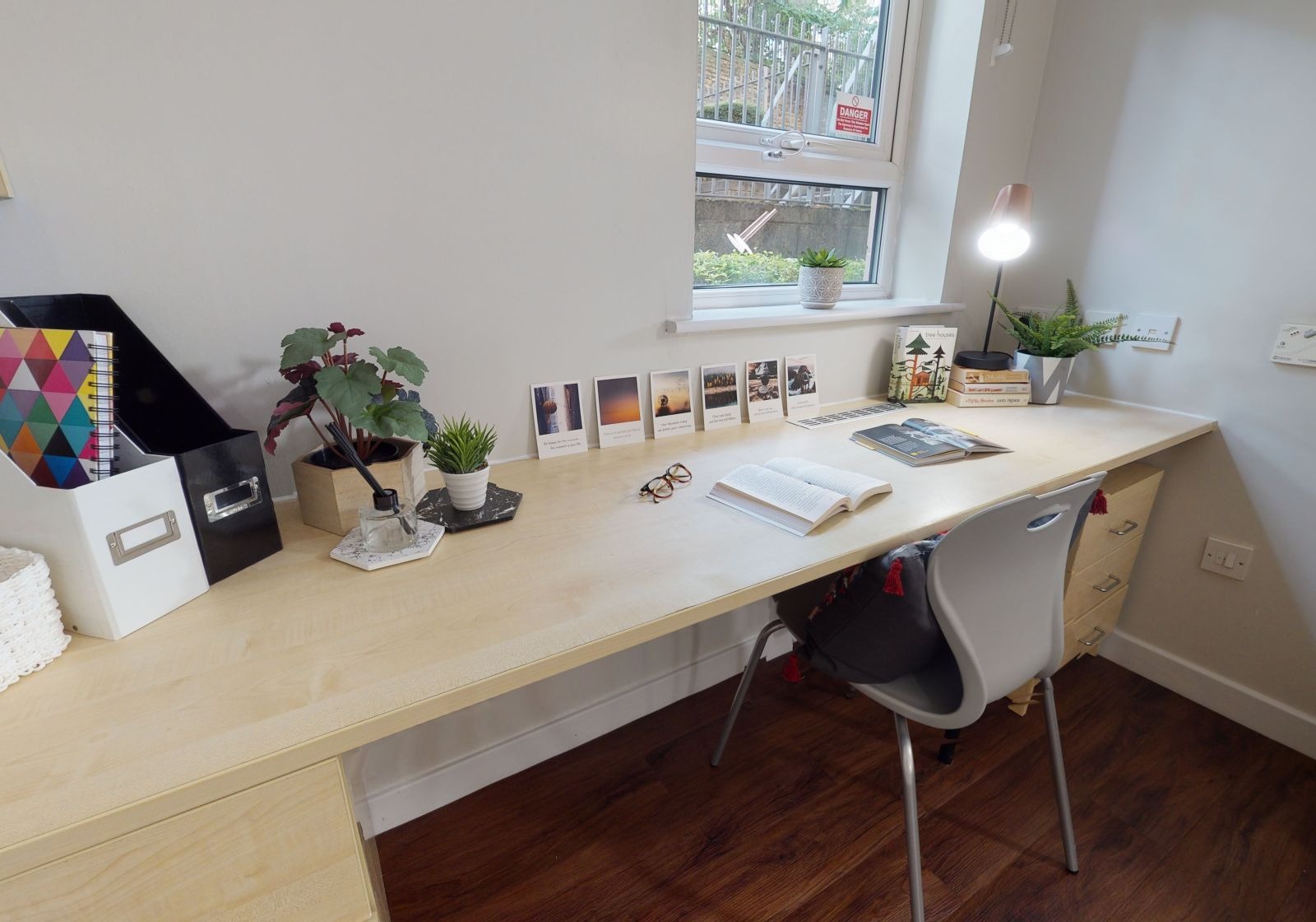 Our rooms have everything you need in 13 sq m, including your own private shower and toilet. With cupboards, drawers and a desk, there’s plenty of space for all your bits and room to study. A small double bed means you don’t need to compromise on your sleep either. Your shared kitchen and communal space completes the package to give you everything you need.