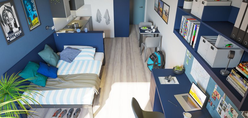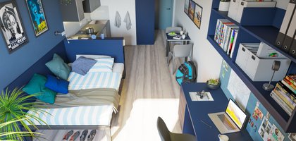 Check out our accessible classic studio, perfect for those who want bags of space in a cozy, yet modern setting! Students get their very own kitchenette and a study desk for when it’s time to focus. Had a long day? Sink into your comfy bed and stick on some Netflix, our fast WiFi is included – just don’t forget the popcorn!