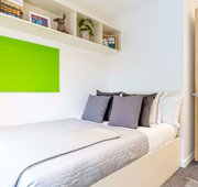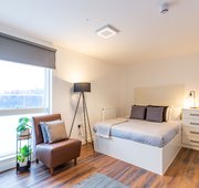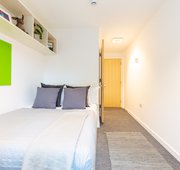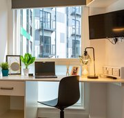 The Deluxe Studio, located on high floor, is perfect for students who want their own private space. It includes a 3/4 bed, plenty of storage, a study desk, and a wardrobe with a full-length mirror. The private en-suite shower room ensures you have everything you need right in your apartment. You also have your own kitchen, equipped with the necessary amenities to cook your favourite meals. With superfast WiFi, you can enjoy seamless studying and entertainment.