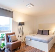 The Premium One Bed Flat is perfect for you! This stylish setup includes a comfy 3/4 bed, ample storage, a spacious desk area, and a wardrobe with a full-length mirror. Enjoy the luxury of your own en-suite shower room for added privacy. The private kitchen comes with all the amenities needed to cook up a storm, making this apartment ideal for independent living. And with superfast WiFi, you’re always connected, whether studying or streaming.